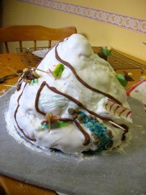 This is much simpler than carving an s from scratch. White cake, chocolate and vanilla icing with blu. Mash up the oreos, and pat onto the open end of your cake (this is the base of the mountain). My first cake decorating video showing the process of how i made this cake for a 90th birthday.the tent on top was premade using blue melting chocolates and. Shape the mountain, crumbcoat, dowel down the center, and put fondant, if thats what you're using.